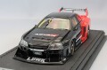 LB-ER34 Super Silhouette SKYLINE を1/43スケールレジンモデルで再現。 ボディカラー:ブラック/レッド。 ADVAN Racing GTタイプ 18インチホイール(ブロンズ)装着。 LBWKスーパーシルエット専用ボディキット(フロントリップ、前後オーバーフェンダー、サイドステップ、リヤウィング、リヤディフュ―ザー)、細部にスポンサーステッカー、バケットシート(レッド)、ロールバー、サイドマフラー装着。