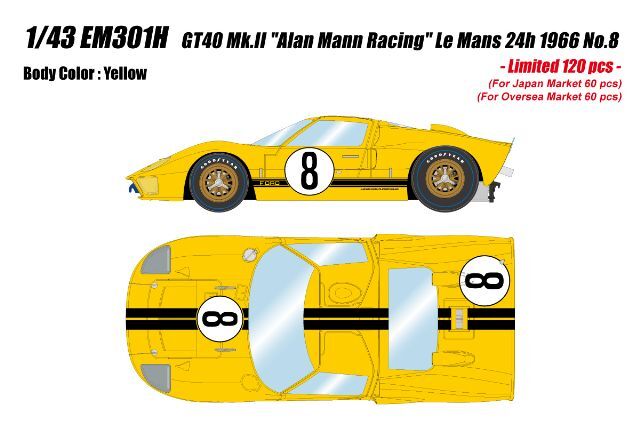 製品名: ★予約品★ アイドロン 1/43 GT40 Mk.2 "アランマンレーシングチーム" 1966 ルマン24H #8 イエロー