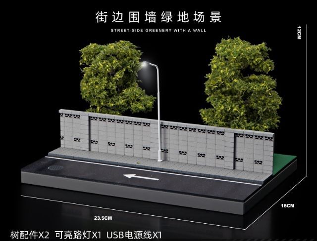 収蔵家 1/64 壁沿い道路と緑地公園ジオラマ