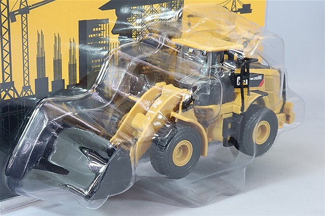 商品説明: ●1/64スケールでキャタピラのホイールローダ、950Mを再現 ●組み立て塗装済みの完成品 ●バケットは上下可動 ●全長135mm、幅46mm、高さ56mm ●中身の見えるブリスタータイプのパッケージ入り